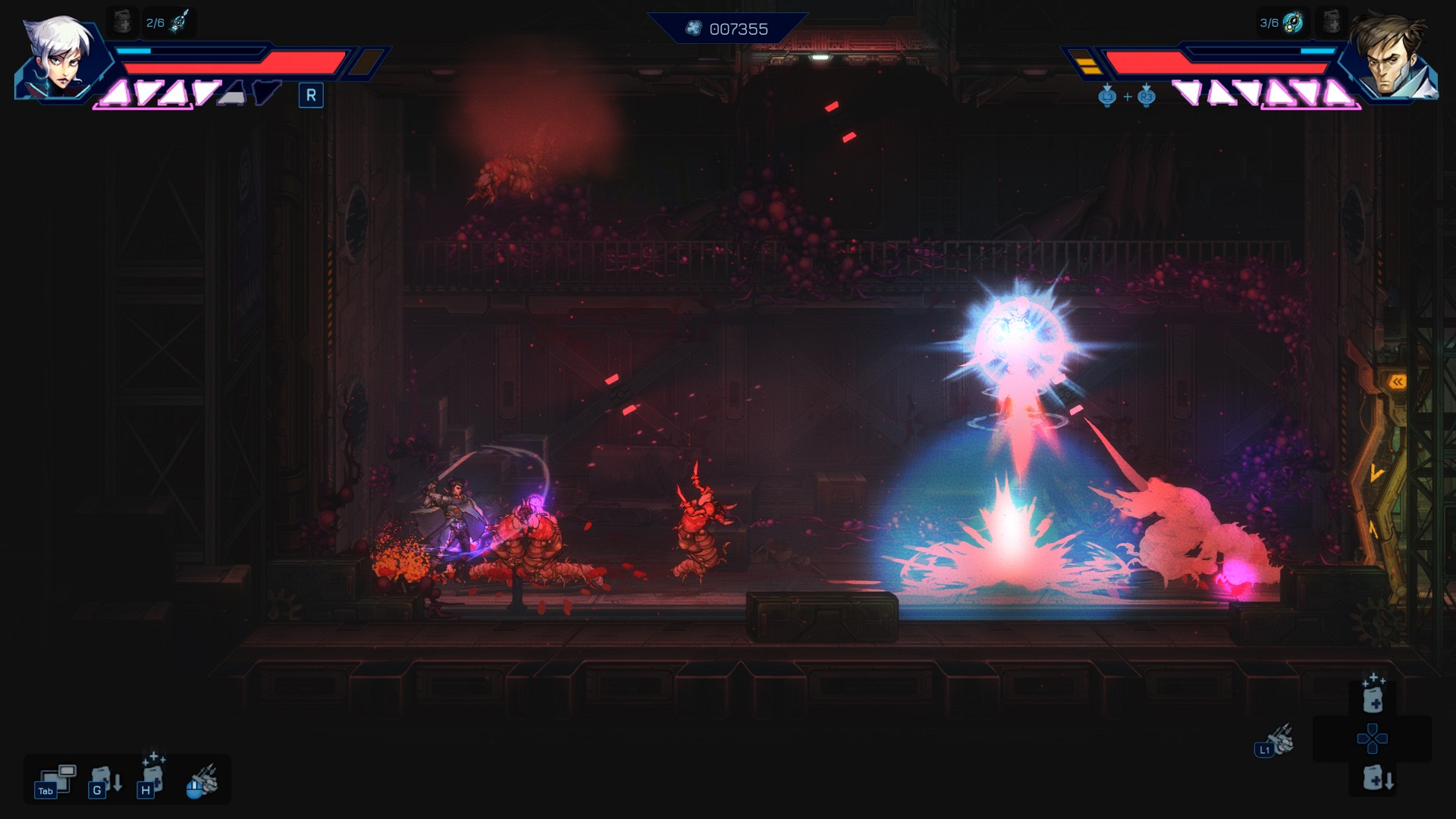 The unusual spin of the genre, turns the classic metroidvania into a fun, couch co-op adventure. Both characters develop differently as the game goes on. Explore the grim locations of the space ark, rescue an ambushed or seriously injured partner. Get challenged by dangerous mutants and build your own boss-fight strategies together with a friend. And the best part is that you can always switch to single player mode if your pal is not around.