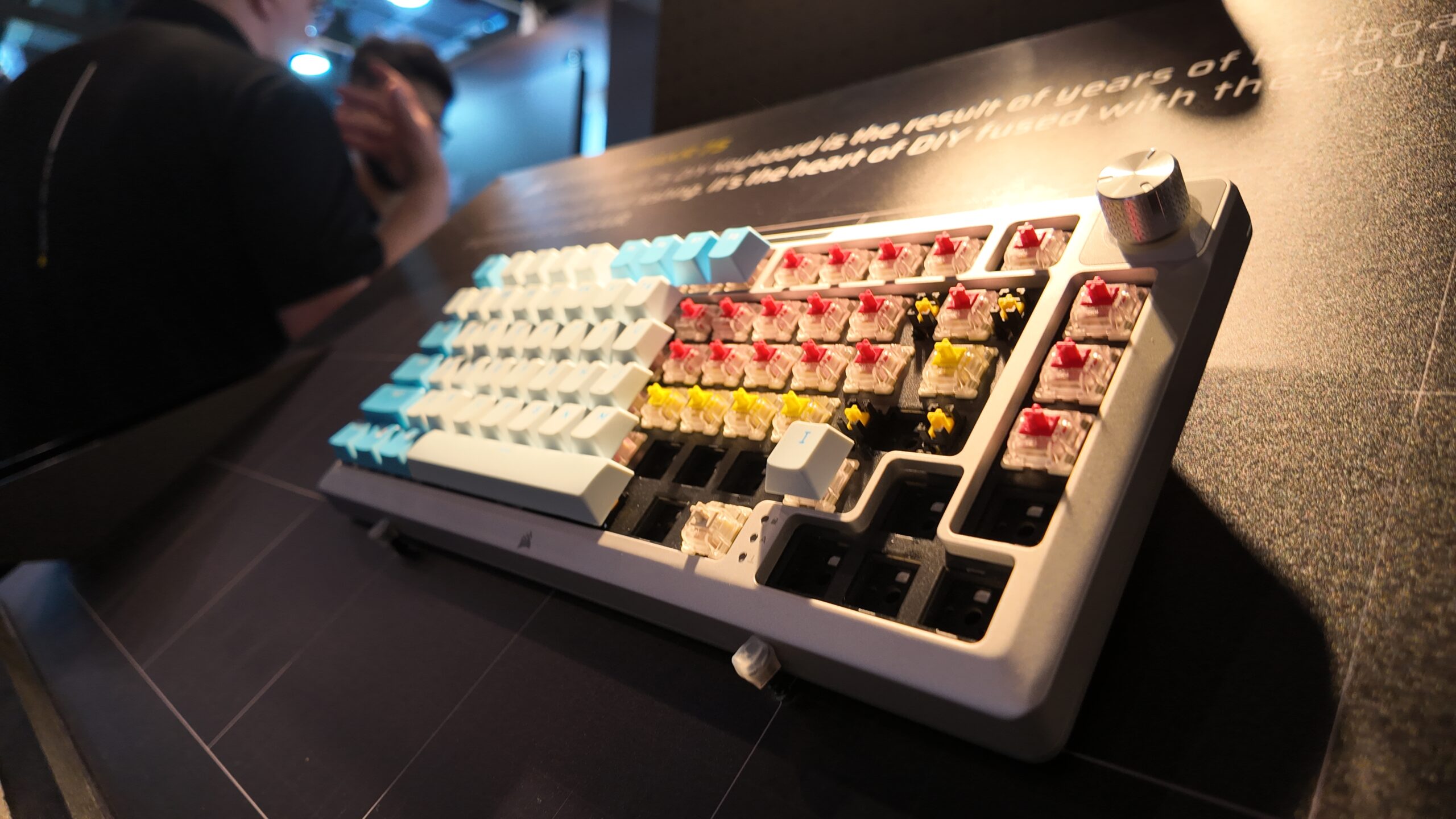 What we do know is the full kit will allow you to include a wireless module to make your MAKR board cable-free, as well as the option to drop in a rotary dial module (because who doesn’t love a good tactile twiddle) or even a wee LCD screen. Naturally, you also have your pick of keycap designs and Corsair switches too. I’m partial to the Celestial keycap designs myself, but cherry blossoms, a purple-y ‘sci-fi’ colourway, and more also feature.