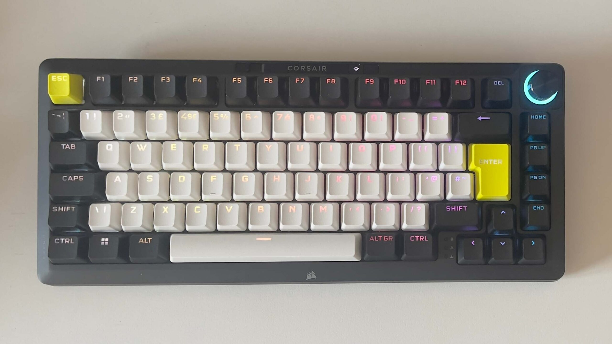 However, there are aspects of that malleability that demonstrate Corsair’s really done its homework. The choice of polycarbonate or FR4 switchplates ($20 / £16 more for the latter, mind you) gives you a real tangible difference in tactile sensation and acoustic feedback, well beyond what a difference in switch can change. That alone shows the designers have been reading the right subreddits.