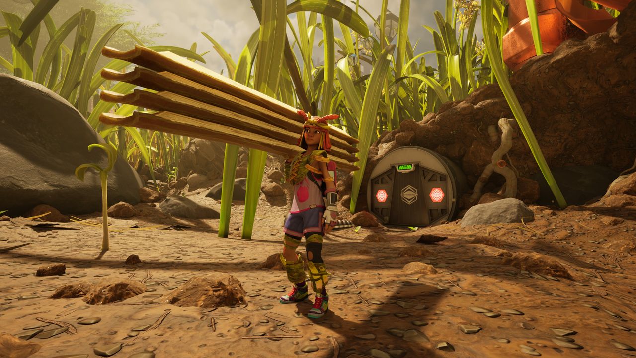 When you’re trying to build the hatchery and other structures early on, chopping down grass flowers is your best bet. This grass variant is easy to spot by its distinctive seed head (shown in the screenshot above), and it only requires a level one Omni-Axe, too. There are also loads of them around the Ranger Outpost: Snackbar where you’ve likely pitched your first base.